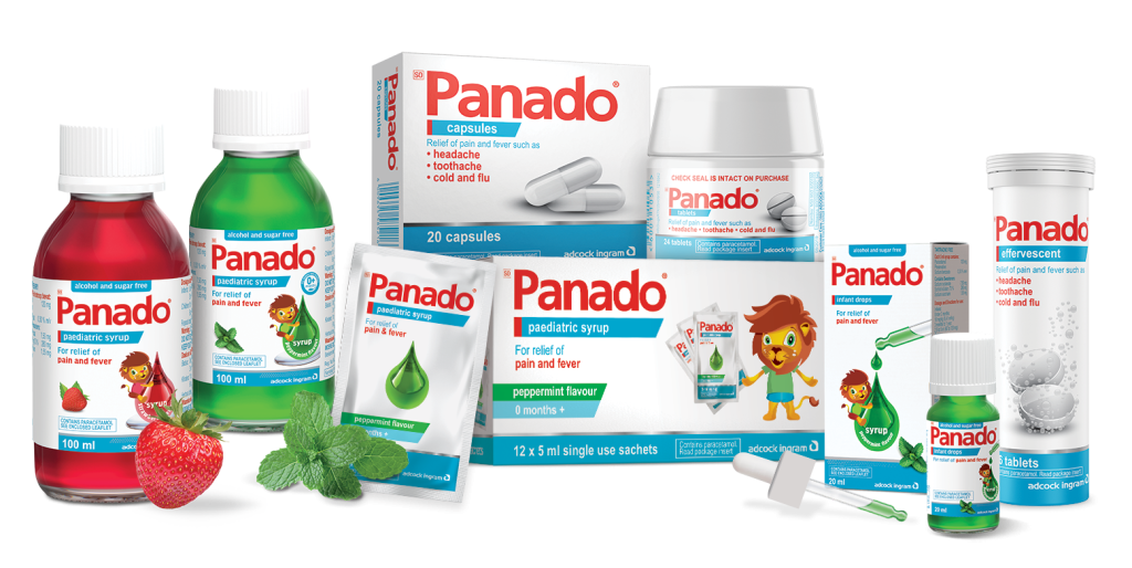 Panado®’s wide range of pain relievers and fever reducing products includes in the paediatric range, Panado® Paediatric Syrup, Strawberry,11 Panado® Paediatric Syrup, Peppermint Alcohol and Sugar-Free,12 Panado® Paediatric Syrup, Peppermint 5 ml Sachets and Panado® Infant Drops.6 For adults the range includes Panado® Capsules8, Panado® Tablets7 and Panado® Effervescent Tablets9.